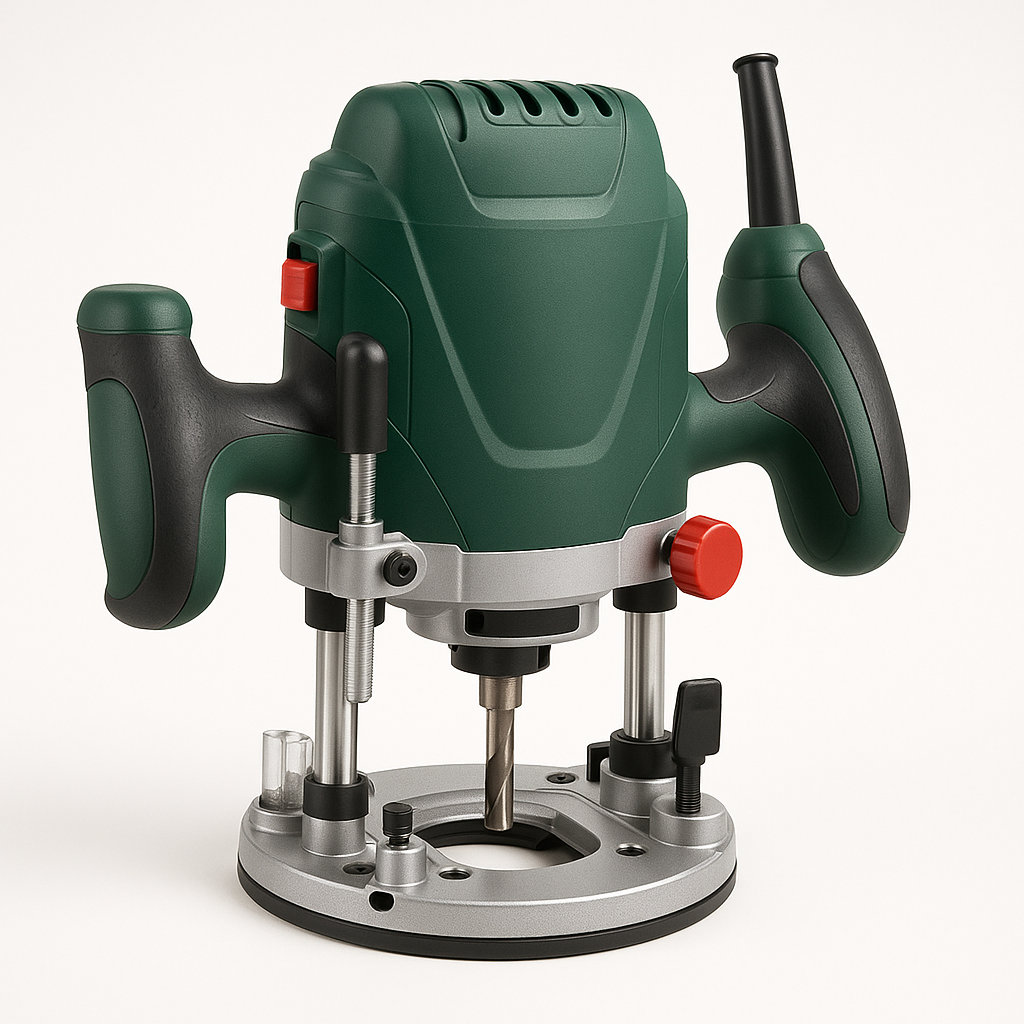 Die Oberfräse ist umfangreich ausgestattet mit Drehzahlvorwahl, Revolveranschlag, Spindelarretierung, Sanftanlauf, Parallelanschlag, Tiefenfeinjustierung, Feinjustierung, Wiederanlaufschutz, Staubabsaugung, Absaugadapter und Drehzahlregelung.