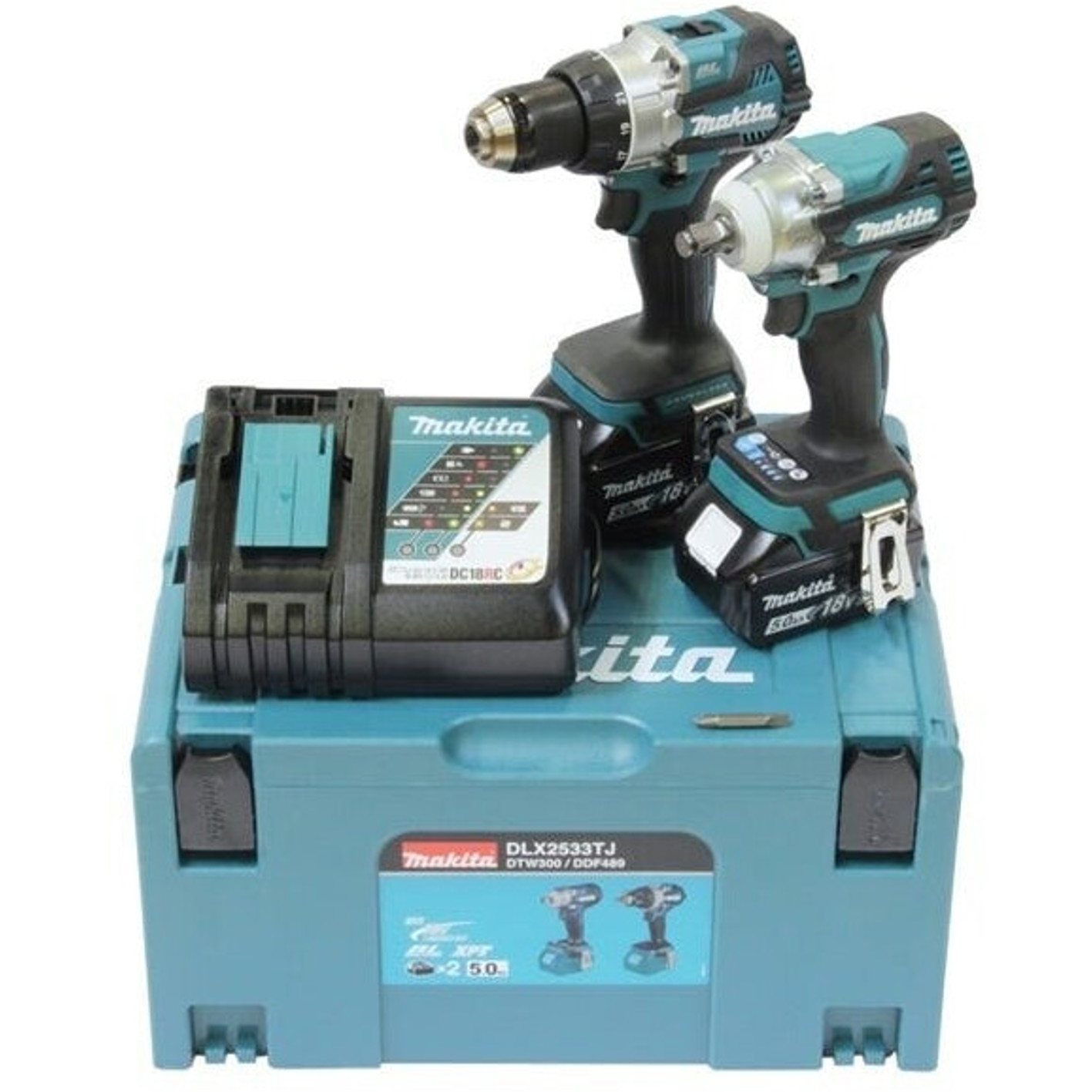 Makita - DLX2533TJ - Akku-Maschinenset - 2x 5 Ah Akkus, Ladegerät, Makpac Koffer