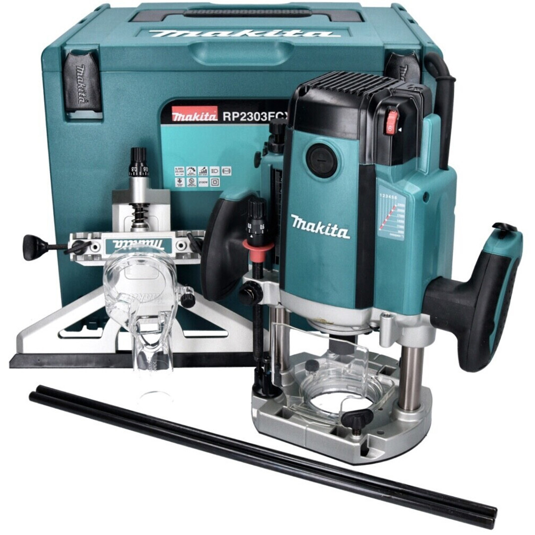 Makita - RP2303FCXJ - Oberfräse - 2300 Watt, 70 mm Fräskorbhub, Sanftanlauf