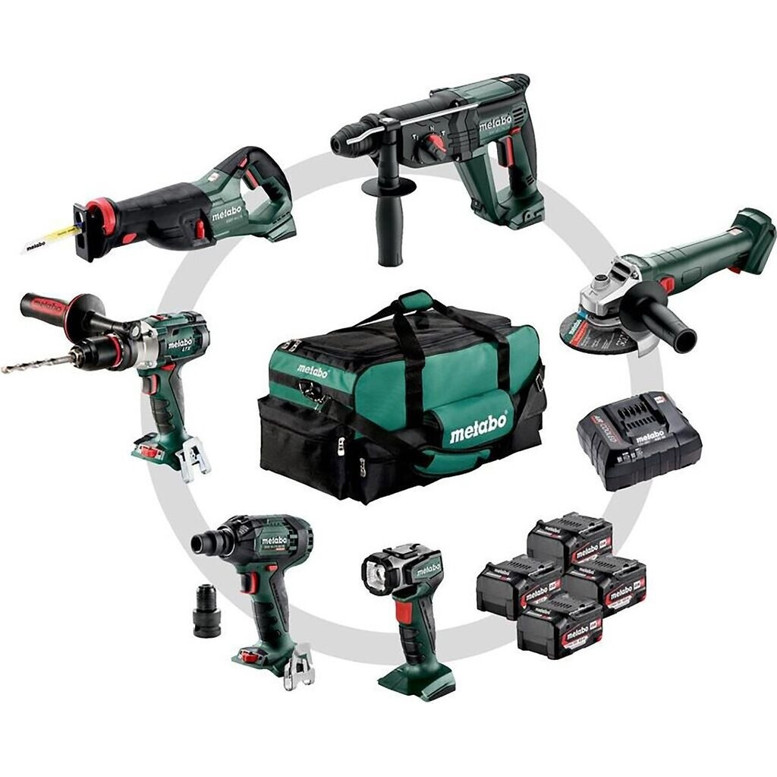 Das Metabo Combo Set 6.1 ist ein leistungsstarkes Akku-Maschinenset in ansprechendem Grün, das speziell für professionelle Anwender in Gewerbe und Industrie konzipiert wurde. Dieses vielseitige Set kombiniert sechs verschiedene Elektrowerkzeuge, die für eine breite Palette von Aufgaben wie Hammerbohren, Bohren, Sägen, Schleifen und Stemmen geeignet sind. Jedes Werkzeug wird von einem robusten 18 V Li-Ion Akku angetrieben, was maximale Flexibilität und Unabhängigkeit von Stromquellen gewährleistet.