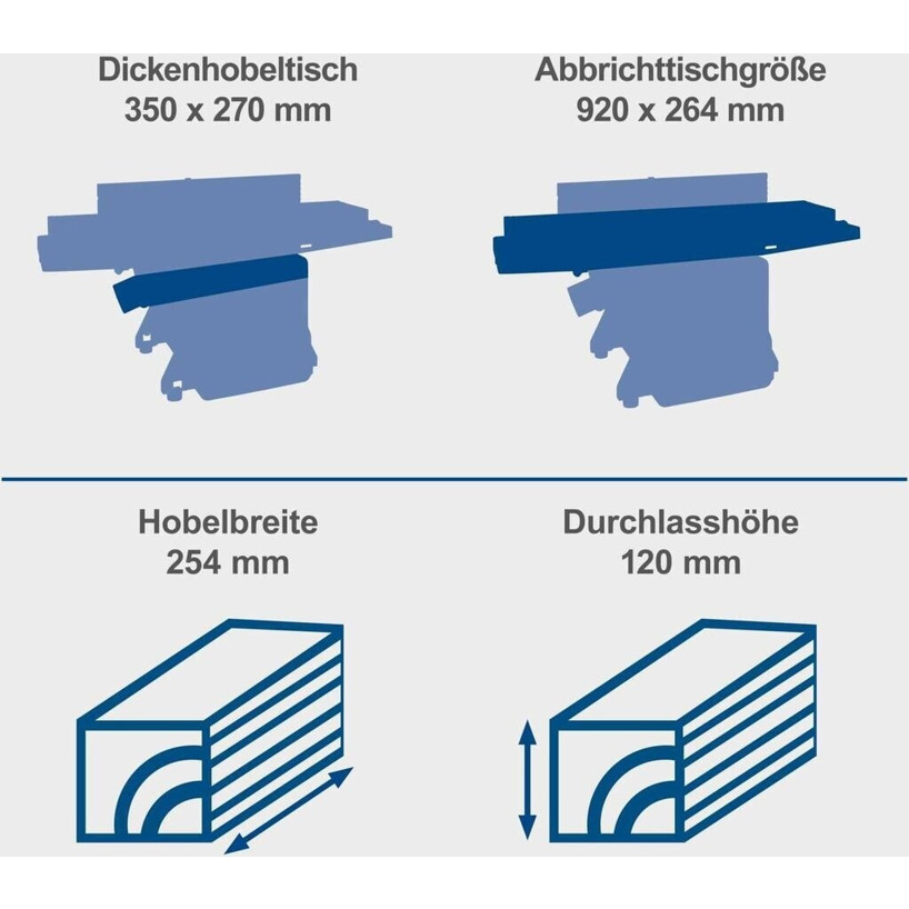 | Produkttypen: | Dickenhobel, Abrichthobel, Elektrohobel, Universal-Kombimaschine |