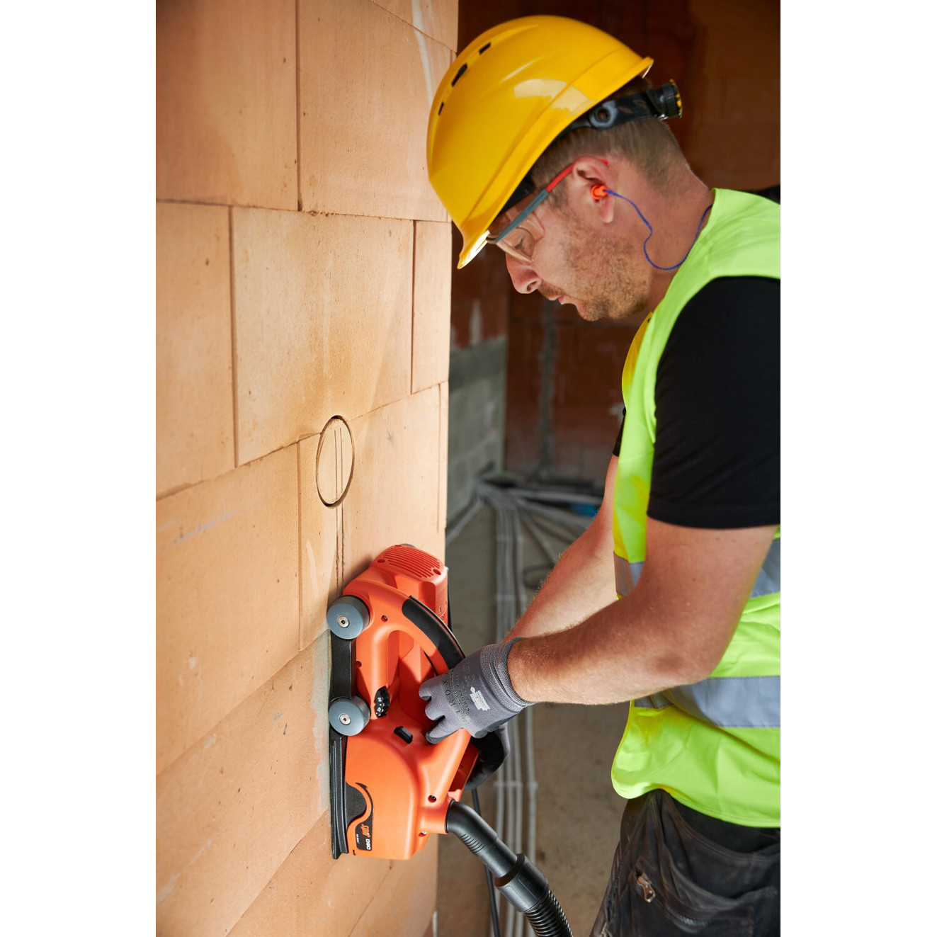 Die Mauernutfräse Spit D90 ist speziell für Fräsarbeiten konzipiert und bietet eine maximale Frästiefe von 50 mm.